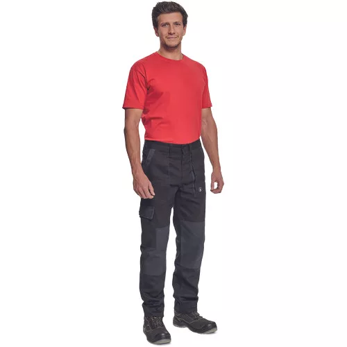 • férfi munkanadrág rugalmas derékkal • 2 első zseb, 1 oldalzseb, 2 hátsó zseb • megerősített térdrész • leengedhető szárak
