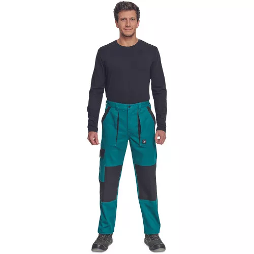 • férfi munkanadrág rugalmas derékkal • 2 első zseb, 1 oldalzseb, 2 hátsó zseb • megerősített térdrész • leengedhető szárak