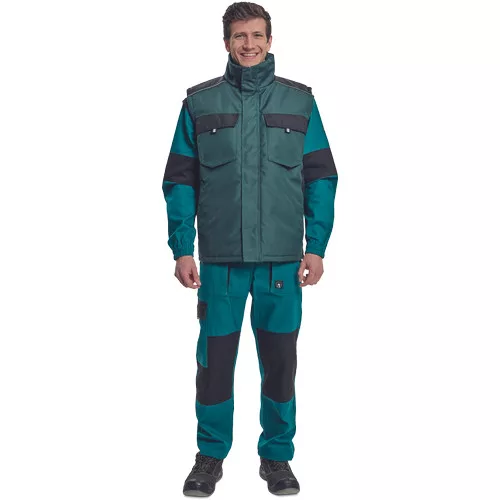 • férfi téli mellény • cipzárral záródó kialakítás tépőzáras hajtókával • 2 oldalzseb, 2 mellzseb • 1 belső mobiltelefon zseb • fényvisszavető szegélyek