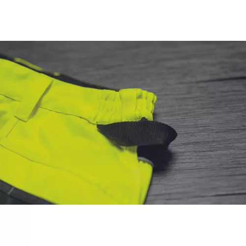 • men's HI-VIS working pants with an elastic waistband • 2 multifunctional flying pockets • 2 printed 7.5 cm wide reflective stripes on bottom legs • Oxford 600D reinforcement at knee areas with optional knee pad insertions • adjustable leg length