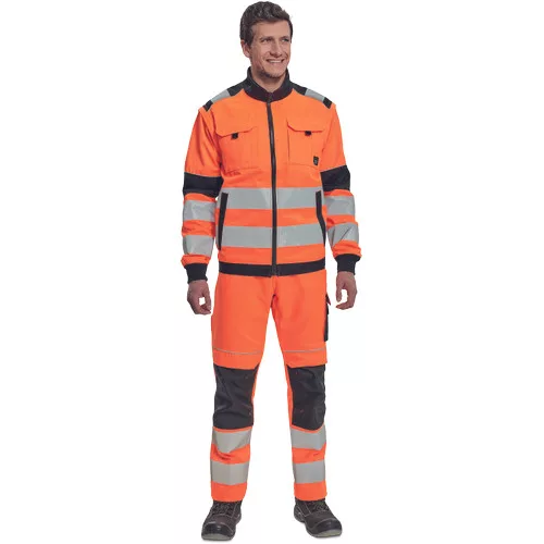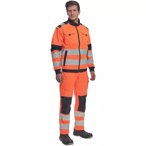 • férfi HI-VIS cipzáras munkakabát levehető ujjakkal • 2 oldalzseb • 2 mellzseb • Oxford 600D megerősítés a váll-és könyökrészeken • 7 cm-es nyomtatott fényvisszavető csík az ujjakon és a test körül derékrészen • rugalmas mandzsetta és alsó szegély • 2 kisebb fényvisszavető csík a vállakon • fényvisszavető szegés