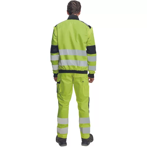 • férfi HI-VIS cipzáras munkakabát levehető ujjakkal • 2 oldalzseb • 2 mellzseb • Oxford 600D megerősítés a váll-és könyökrészeken • 7 cm-es nyomtatott fényvisszavető csík az ujjakon és a test körül derékrészen • rugalmas mandzsetta és alsó szegély • 2 kisebb fényvisszavető csík a vállakon • fényvisszavető szegés