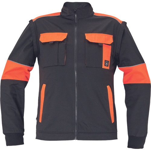 • férfi cipzáras munkakabát levehető ujjakkal • 2 oldalzseb • 2 mellzseb • Oxford 600D erősítés a váll-és könyökrészeken • rugalmas mandzsetta és derékszegély • fényvisszavető szegélyek