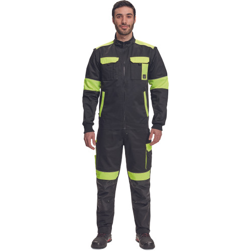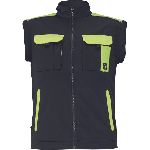 • férfi cipzáras munkakabát levehető ujjakkal • 2 oldalzseb • 2 mellzseb • Oxford 600D erősítés a váll-és könyökrészeken • rugalmas mandzsetta és derékszegély • fényvisszavető szegélyek