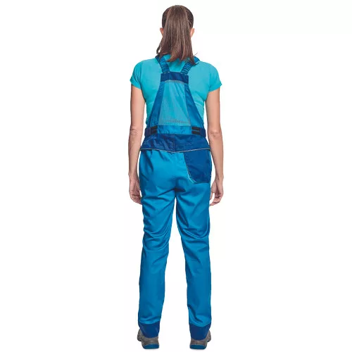 • női munkanadrág könnyű pamut-PES kevertszálas anyagból • nőies szabás • dekoratív paszpol kontrasztos színekkel • légáteresztő, köszönhetően hálós betéteknek • zsebfedővel fedett zsebek • a nadrágszárak hossza 5 cm-rel meghosszabbítható • 2 oldalsó zseb • 1 hátsó zseb • 1 mellkasi zseb, belül D-gyűrűvel •tartós anyagú • puhább, hajlékonyabb szövet