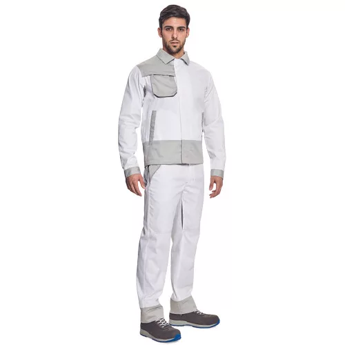 • férfi munka dzseki pamut-PES kevertszálas anyagból • dekoratív paszpol kontrasztos színekben • jó szellőzés a hálós betéteknek köszönhetően • fedett cipzár és zsebek • 2 oldalzseb • 1 mellzseb, benne rejtett D-gyűrűvel • ipari mosással tisztítható