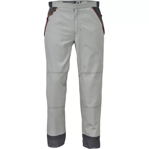 • férfi munkanadrág könnyű pamut-PES kevertszálas anyagból • dekoratív paszpol kontrasztos színekkel • hálós betétek • zsebfedős zsebek • a derékbőség tépőzárral állítható • 5 cm-rel leengedhető szárak • 2 első zseb, az egyikben D-gyűrű található • 1 hátsó zseb •tartós anyagú • puhább, hajlékonyabb szövet