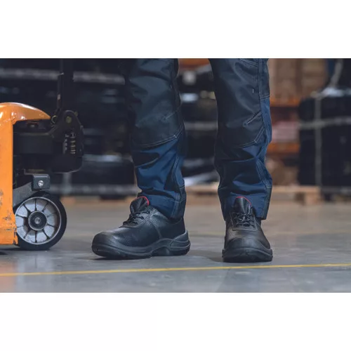 • biztonsági félcipő acél lábujjvédővel, átszúrás ellen védő köztalppal és kétrétegű PU/PU külső talppal • bőr felsőrész