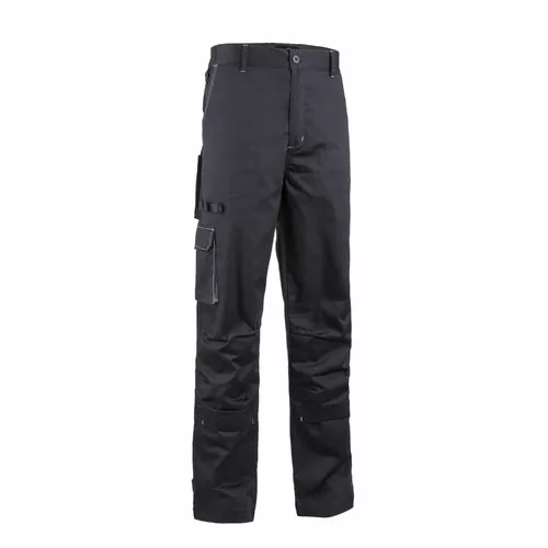 * 245 g/m2 vastag, kopásálló, sávolykötésű anyag, 60% pamut, 40% poliészter ,comfort fit szabású ,sötétkék színű deréknadrág * térd fölé érő hossz ,övbújtatók, biztonsági varrás az ülepen * gombbal és cipzárral záródó, gumírozott derék ,a betéttel egy színű varrás * két bebújós oldalzseb , két fedett rávarrott cargo zseb a combon,egy zárható hátsó telefonzseb,egy kétrészes szerszámtartó