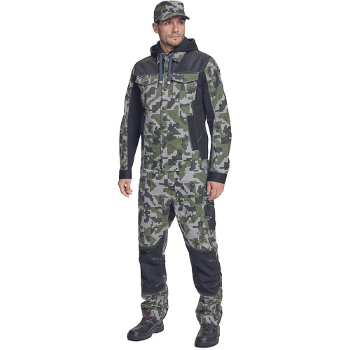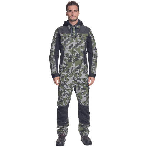 • férfi munkakabát férfi munkakabát innovatív, pamutgazdag, rugalmas TRIFIBETEX, illetve TRIFIBETEXPRO® anyagokból CORDURA® betétekkel, digitális terepmintával, fém gombok, állítható ujjvégek, 2 oldalsó zseb, 2 cipzáras mellkasi zseb, fényvisszavető csíkok