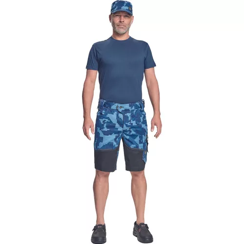 • férfi rövidnadrág innovatív • rugalmas Trifibetex® anyagból digitális terepmintával • 2 ékzseb • hátul 2 tépőzáras foltzseb • bal oldalon nagy multifunkciós zseb • jobb oldalon multifunkciós vonalzó • kés- és ceruzatartó • fém "D" gyűrű • rugalmas derék • fényvisszavető szegés • dekoratív tripla varrás kontrasztos színnel • kalapácstartó
