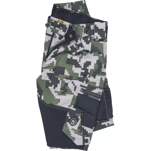 • férfi rövidnadrág innovatív • rugalmas Trifibetex® anyagból digitális terepmintával • 2 ékzseb • hátul 2 tépőzáras foltzseb • bal oldalon nagy multifunkciós zseb • jobb oldalon multifunkciós vonalzó • kés- és ceruzatartó • fém "D" gyűrű • rugalmas derék • fényvisszavető szegés • dekoratív tripla varrás kontrasztos színnel • kalapácstartó