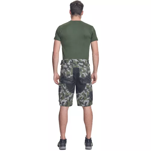• férfi rövidnadrág innovatív • rugalmas Trifibetex® anyagból digitális terepmintával • 2 ékzseb • hátul 2 tépőzáras foltzseb • bal oldalon nagy multifunkciós zseb • jobb oldalon multifunkciós vonalzó • kés- és ceruzatartó • fém "D" gyűrű • rugalmas derék • fényvisszavető szegés • dekoratív tripla varrás kontrasztos színnel • kalapácstartó