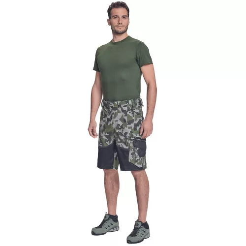 • férfi rövidnadrág innovatív • rugalmas Trifibetex® anyagból digitális terepmintával • 2 ékzseb • hátul 2 tépőzáras foltzseb • bal oldalon nagy multifunkciós zseb • jobb oldalon multifunkciós vonalzó • kés- és ceruzatartó • fém "D" gyűrű • rugalmas derék • fényvisszavető szegés • dekoratív tripla varrás kontrasztos színnel • kalapácstartó