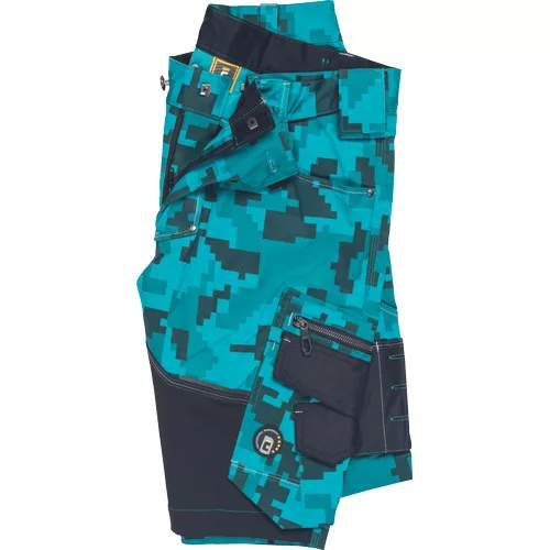• férfi rövidnadrág innovatív • rugalmas Trifibetex® anyagból digitális terepmintával • 2 ékzseb • hátul 2 tépőzáras foltzseb • bal oldalon nagy multifunkciós zseb • jobb oldalon multifunkciós vonalzó • kés- és ceruzatartó • fém "D" gyűrű • rugalmas derék • fényvisszavető szegés • dekoratív tripla varrás kontrasztos színnel • kalapácstartó