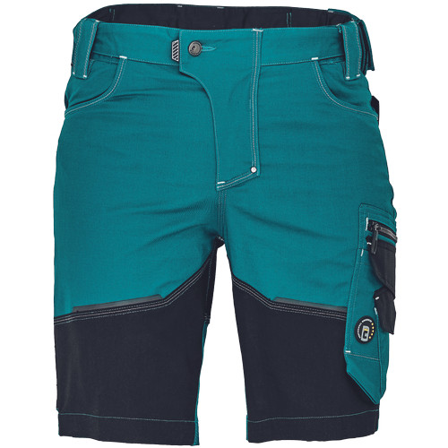 • férfi rövidnadrág innovatív, rugalmas Trifibetex® anyagból • 2 ékzseb • hátul 2 tépőzáras foltzseb • bal oldalon nagy multifunkciós zseb • jobb oldalon multifunkciós zseb vonalzónak • kés- és ceruzatartó • fém "D" gyűrű • rugalmas derék • fényvisszavető részletek • dekoratív tripla varrás kontrasztos színnel • kalapácstartó