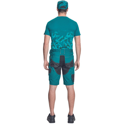 • férfi rövidnadrág innovatív, rugalmas Trifibetex® anyagból • 2 ékzseb • hátul 2 tépőzáras foltzseb • bal oldalon nagy multifunkciós zseb • jobb oldalon multifunkciós zseb vonalzónak • kés- és ceruzatartó • fém "D" gyűrű • rugalmas derék • fényvisszavető részletek • dekoratív tripla varrás kontrasztos színnel • kalapácstartó