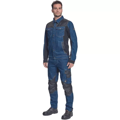 • férfi munkakabát rugalmas farmer és TRIFIBETEXPRO® kombinációjából • CORDURA® betétek a kényes részeken • 2 oldalzseb • 2 mellzseb