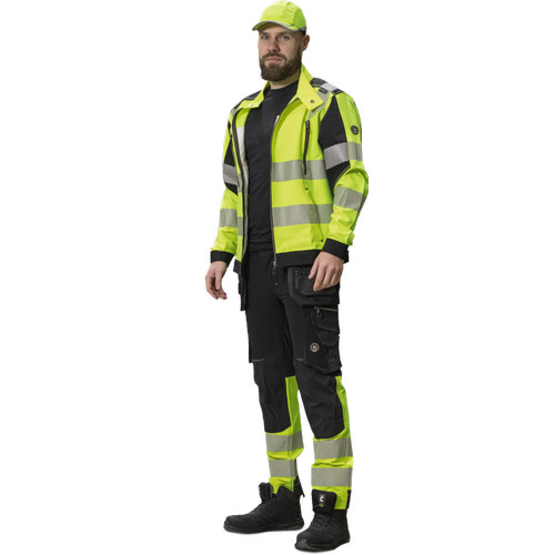 • férfi HI-VIS kabát állógallérral és cipzárral • rugalmas, innovatív TRIFIBETEX VIS® anyag • 2 oldalzseb • 2 cipzáras mellzseb • szegmentált, nyomtatott 7 cm széles fényvisszavető csíkok a törzsön, ujjakon és a vállrészen • patenttal állítható mandzsetta