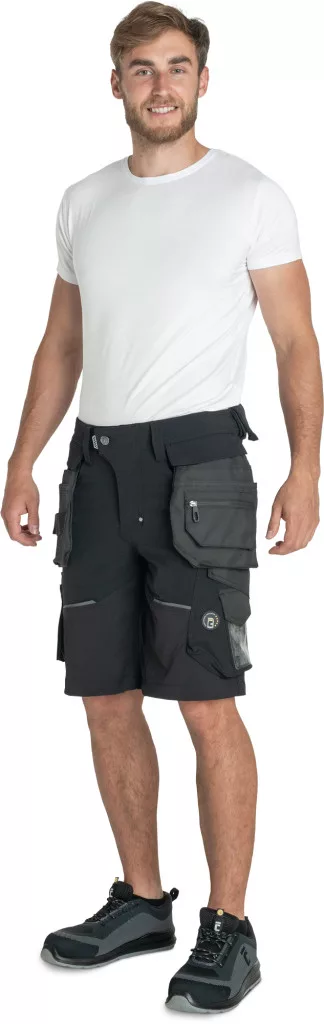 Férfi munkanadrág egyedi négyirányú stretch anyagból, Trifibetex-PRO® alapanyagból, melyet 2 oldalsó, eltávolítható, multifunkcionális lengőzseb egészít ki • 2 elülső ékzseb • 2 hátsó felvarrt zseb tépőzárral • 2 multifunkcionális combzseb • CORDURA® megerősítés • tartós hármas varrás a szárakon és az üleprészen• rugalmas derék • színben harmonizáló fényvisszavető részletek.