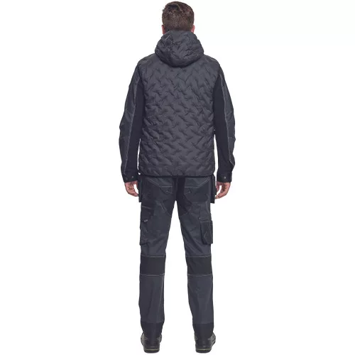 Markáns vonalvezetésű, tollpehely bélésű, cipzáras mellény kapucnival. Modern kialakítású, kényelmesen feszülő vonalainak köszönhetően stílusos megjelenést kölcsönöz. Gumírozott derékrésszel és két mély, cipzárral záródó oldalzsebbel készül. Anyaga 100% poliészter. Bélés 100 % poliészter, 70 g/m², taffeta. Töltőanyag: 905 tollpehely, 10% toll.