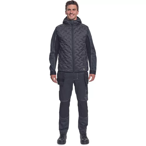 Markáns vonalvezetésű, tollpehely bélésű, cipzáras mellény kapucnival. Modern kialakítású, kényelmesen feszülő vonalainak köszönhetően stílusos megjelenést kölcsönöz. Gumírozott derékrésszel és két mély, cipzárral záródó oldalzsebbel készül. Anyaga 100% poliészter. Bélés 100 % poliészter, 70 g/m², taffeta. Töltőanyag: 905 tollpehely, 10% toll.