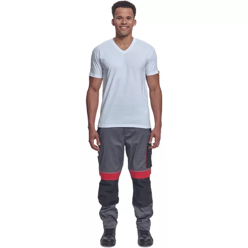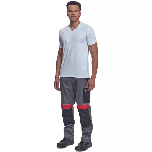 • rövid ujjú, V-nyakú pamut jersey póló, antisztatikus szálakkal • univerzális minta