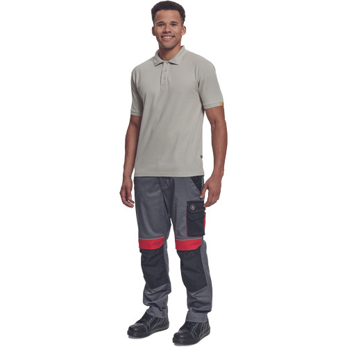 • rövid ujjú galléros pamut póló, antisztatikus szálakkal • univerzális minta • műanyag gombolású nyakkal