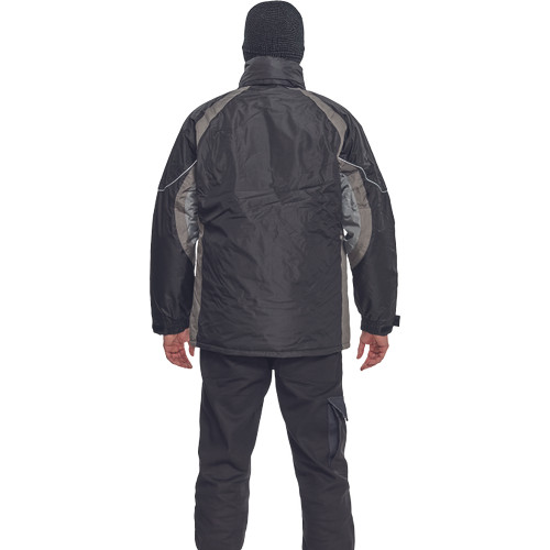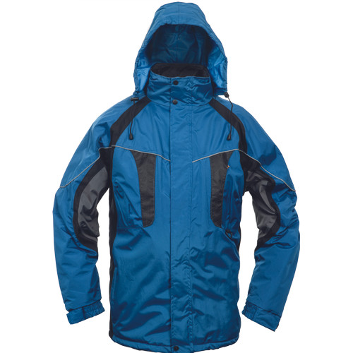 • bélelt, vízálló kabát gallérba hajtott kapucnival • külső szövet kopásállóságot növelő kezeléssel • húzózsinórral szűkíthető alsó szegély • fényvisszavető részletek