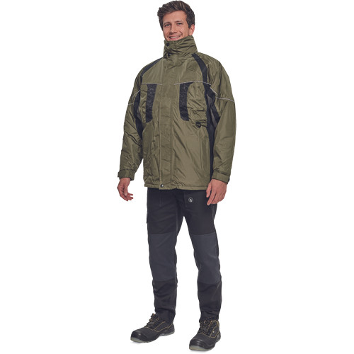 • bélelt, vízálló kabát gallérba hajtott kapucnival • külső szövet kopásállóságot növelő kezeléssel • húzózsinórral szűkíthető alsó szegély • fényvisszavető részletek