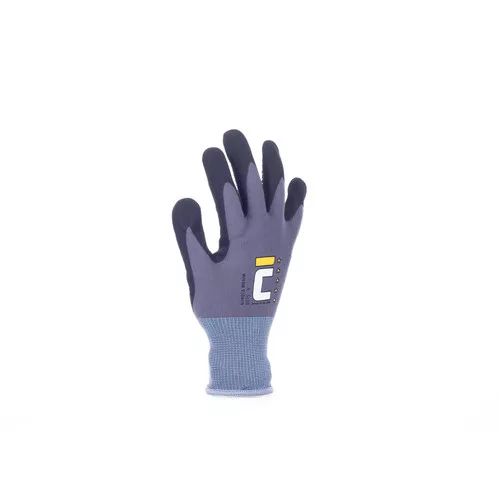 • védőkesztyű, nylon/lycra dzsörzé, mikroporózus nitril mártással • nitril pöttyöözés a tenyéren és ujjakon • kiváló folyadékállóság • jó tapadás száraz, vizes és olajos környezetben is