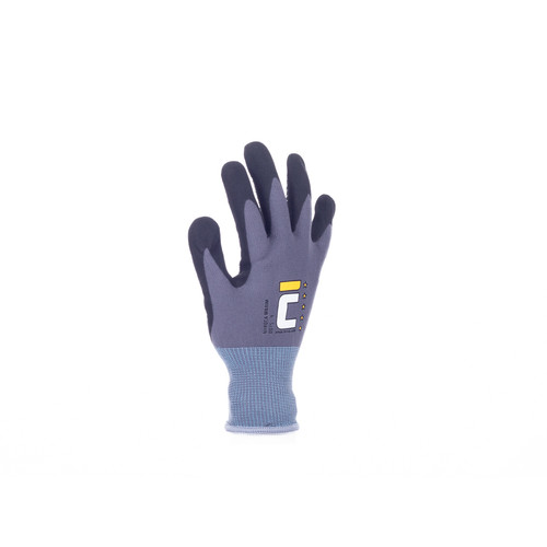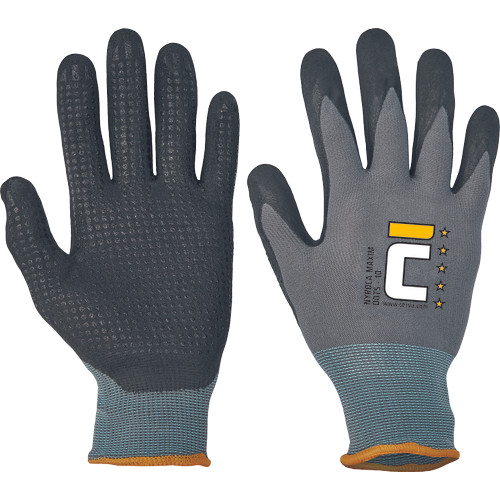 • védőkesztyű, nylon/lycra dzsörzé, mikroporózus nitril mártással • nitril pöttyöözés a tenyéren és ujjakon • kiváló folyadékállóság • jó tapadás száraz, vizes és olajos környezetben is