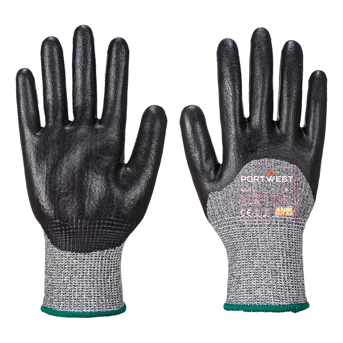 Supreme cut resistance combined with superb grip in oily conditions. 3/4 nitrile foam dipping absorbs oil keeping hands clean and dry to ensure secure handling.