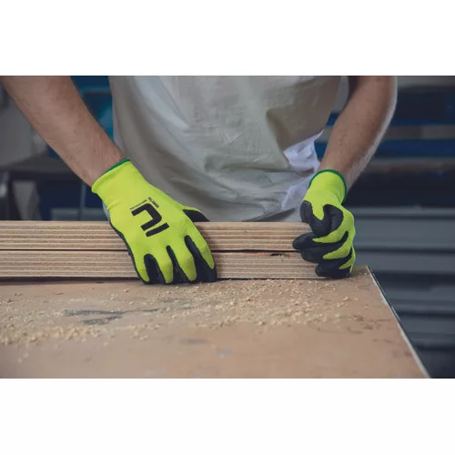 • szintetikus, tenyéren latex mártott, kötött védőkesztyű