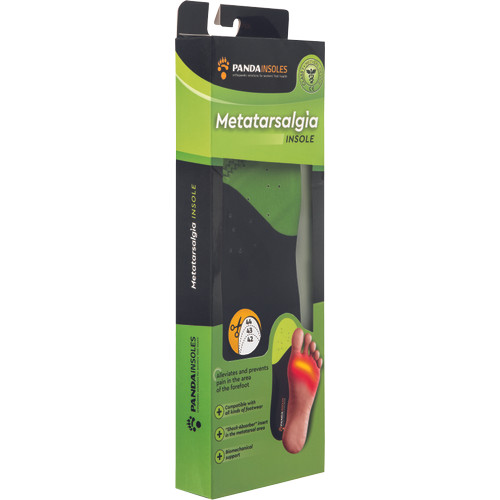 The “Metatarsalgia” insole is recommended for users particularly exposed to stress to the forefoot in order to improve the wellness of the foot inside the shoes and to prevent or alleviate pain. The innovative design combines the action of the shock-absorbing insert “Extra-Soft-Absorber”, positioned at the height of the metatarsal heads, with that of the other two “Memory Foam” inserts, favouring the wellness of feet, knees and back. METATARSALGÌA insoles are the ideal support to prevent soreness and pain caused by rubbing and friction in the forefoot. They also provide support for the transverse arch of the foot, thus reducing the pressure and weight placed on the metatarsal; the individual sizes of the inner sole can be adjusted by shortening its tip according to the markings on its underside