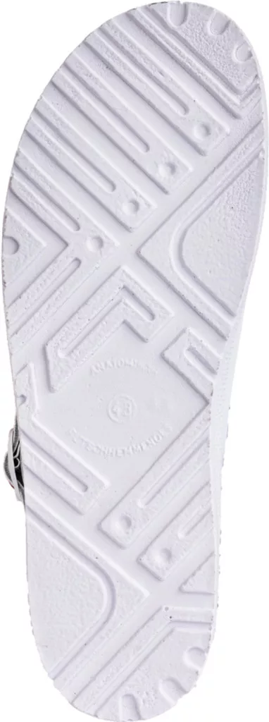 * antisztatikus, olajálló, csúszásmentes fehér PU talp ütődéselnyelő sarokkal * fehér bőr felsőrész, hasítékbőr talpbélés, csatos sarokpánt, párnázott perem * könnyű súlyú, egészségügyi, élelmiszeripari munkákhoz, egész napos viseletre ajánlott védőlábbeli *higiénés eszköz, szellőző felsőrész