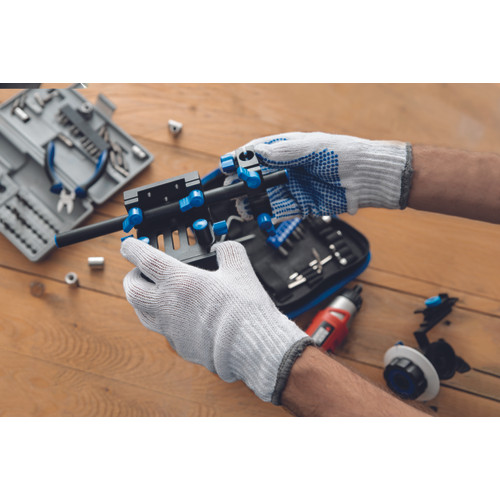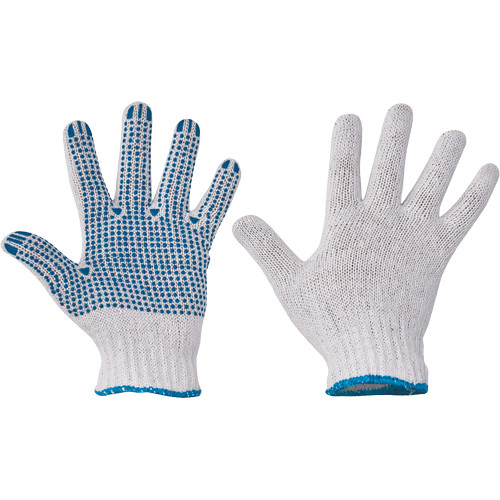 • varratmentes, kötött poliészter-pamut kesztyű • PVC pöttyözött tenyér és ujjak
