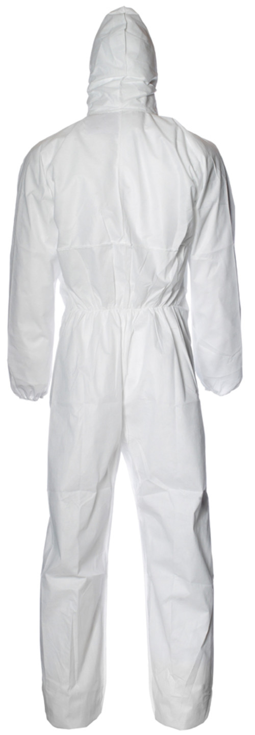 * Dupont(TM) Proshield(R) Basic háromrétegű SMS polipropilén alapanyag* fehét antisztatikus, kapucnis védőoverall* porok, radioaktív szennyeződésű részecskék, fröccsenő folyadékok elleni védelem (5. és 6. típus)* gumírozott derék-, arc-, csukló- és bokarész,