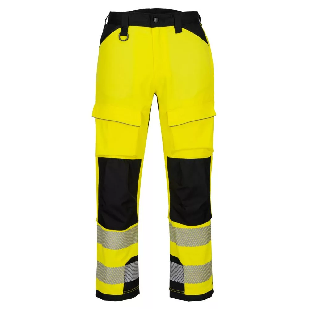 PW3 Hi-Vis Harness Trousers offers flexibility and is constructed using durable and abrasion resistant fabrics. The unique pocket layout makes it user friendly to use with harnesses without restricting access to pockets. Bottom loading knee pad in robust ballistic fabric offering reinforcement at key abrasion points. Ankle strap system for easy movement on ladders