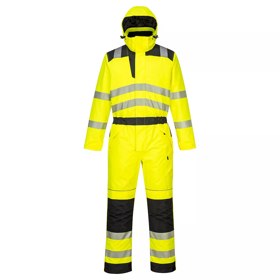 A premium PW3 Hi-Vis Winter Coverall combining total safety with cutting edge design. Made from our renowned 300D Oxford PU coated durable stain resistant fabric, this contemporary design hosts many outstanding features including a detachable quilt lined hood, heavyweight winter padding for maximum thermal protection, extra long side leg zips for ease of putting on and taking off and 8 functional secure storage pockets including top-loading kneepad pockets.