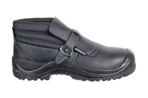 * vízlepergető, fekete bőr bakancs hegesztési munkálatokhoz* könnyű kompozit műanyag lábujjvédő, acélnál rugalmasabb, Wellmax fémmentes textil átszúrás elleni talplemez* olajálló, antisztatikus, SRC csúszásmentes, kétrétegű PU/PU talp* gyorscsattal ellátott lábfejvédő, nyelve kívül bőr, belül PU réteggel, lélegző nemszőtt Tybrelle bélés* szivacsos bokarész