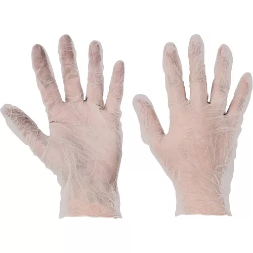 • nem zsíros élelmiszerekkel való rövid idejű érintkezésre alkalmas, egyszerhasználatos, púderezett vinil kesztyű • AQL<1,5
