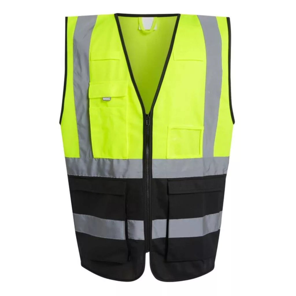 EN ISO 20471:2013 A1:2016 Class 1: Sárga/Tengerészkék, Narancs/Tengerészkék, Sárga/Fekete és Sárga/Királykék