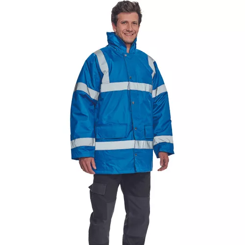 • jólláthatósági bélelt vízálló kabát fényvisszavető csíkokkal: EN 471: 3,2 • gallérba hajtott kapucnival, húzózsinórral • belső kötött mandzsetta • vízállóság 3. osztály és lélegzőképesség 1. osztály az EN 343 szabvány szerint