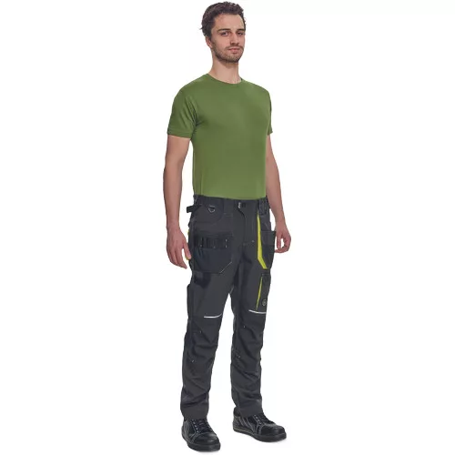 Férfi nadrág rugalmas derékkal és többfunkciós zsebekkel, fényvisszavető díszítéssel. Megerősített térdrész és térdzseb Oxford 600D anyagból térdvédő behelyezéséhez. Ellenálló hármas fedőző varrás az üleprészen és a meghosszabítható szárakon.