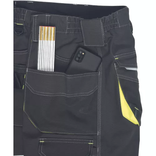 • férfi rövidnadrág rugalmas derékkal és többfunkciós zsebekkel • megerősített zsebek Oxford 600D anyagból • ellenálló hármas fedőző varrás az üleprészen és a szárakon