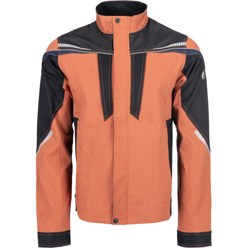 • men's working jacket with zip fastening • made of stretch fabric • 2 side pockets, 2 zipped chest pockets • reinforcement of the stressed parts • reflective piping and printed details