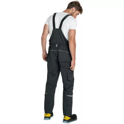 • férfi melles munkanadrág rugalmas anyagból • elasztikus derékrész övbújtatókkal • 2 első zseb, 2 hátsó zseb • 2 cipzáras, hálós szellőző zseb a combrészen • 1 multifunkciós zseb a jobb oldalon • 1 multifunkciós mellzseb • megerősített térdrész térdvédő behelyezéséhez • fényvisszaverő szegélyek és nyomott mintás részletek • a nadrágszár hossza 5 cm-rel hosszabbítható