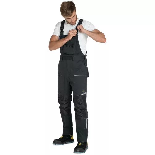 • férfi melles munkanadrág rugalmas anyagból • elasztikus derékrész övbújtatókkal • 2 első zseb, 2 hátsó zseb • 2 cipzáras, hálós szellőző zseb a combrészen • 1 multifunkciós zseb a jobb oldalon • 1 multifunkciós mellzseb • megerősített térdrész térdvédő behelyezéséhez • fényvisszaverő szegélyek és nyomott mintás részletek • a nadrágszár hossza 5 cm-rel hosszabbítható