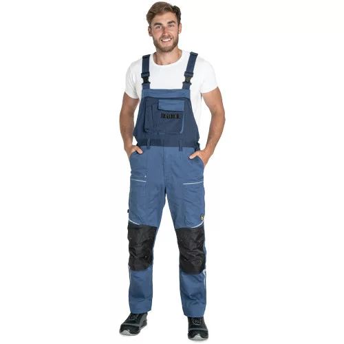 • férfi melles munkanadrág rugalmas anyagból • elasztikus derékrész övbújtatókkal • 2 első zseb, 2 hátsó zseb • 2 cipzáras, hálós szellőző zseb a combrészen • 1 multifunkciós zseb a jobb oldalon • 1 multifunkciós mellzseb • megerősített térdrész térdvédő behelyezéséhez • fényvisszaverő szegélyek és nyomott mintás részletek • a nadrágszár hossza 5 cm-rel hosszabbítható